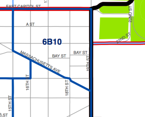 ANC 6B10 map ANC 6B10 is bound by East Capitol Street to the north, 19th Street SE to the east, Massachusetts Avenue SE to the south and southwest, and 15th Street SE to the west. Detail of ANC 6B official map, highlighting ANC 6B10 Share this: Click to share on X (Opens in new window) X Click to share on Facebook (Opens in new window) Facebook Like Loading...